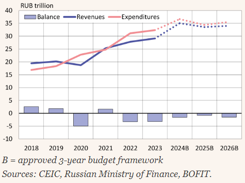Indicators over the last year have shown that Moscow’s spending has once again gotten out of hand. The budget slipped into deficit territory in late 2022 as revenues from oil and gas fell due to the G7 price cap and lower global prices: